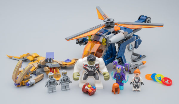 Comme il fallait absolument proposer un véhicule, le designer s'est dit qu'un hélicoptère ferait l'affaire. Et si en plus il permet de larguer Hulk sur les méchants Chitauris, c'est encore mieux. Ni l'engin, ni la fonctionnalité ne sont évidemment présents dans le film. L'hélicoptère pourrait presque faire illusion s'il n'était pas aussi farfelu avec ses pales et sa verrière qui semblent sortis tout droit d'un set de la gamme LEGO Nexo Knights, ses patins et ses lance-missiles négligemment placés au bout des ailes.