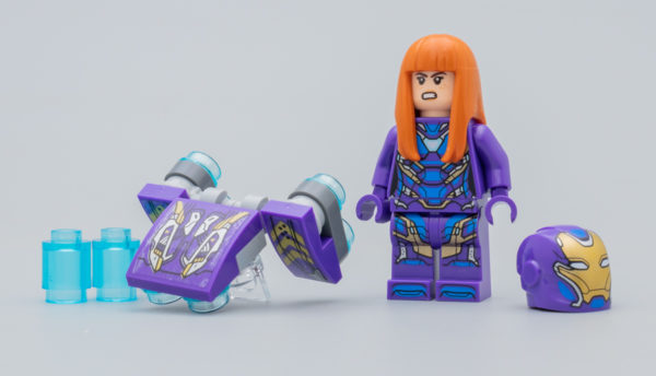 La dotation en personnages est ici intéressante même si les approximations sont nombreuses. On pourrait par exemple discuter de la couleur de l'armure de Pepper Potts en version Rescue et des éléments additionnels franchement volumineux qui habillent la minifig. Et c'est sans parler de la chevelure fournie qui n'est pas vraiment dans l'esprit de la coiffure de Gwyneth Paltrow dans les scènes finales du film ou du casque qui ne dispose pas d'une visière mobile.