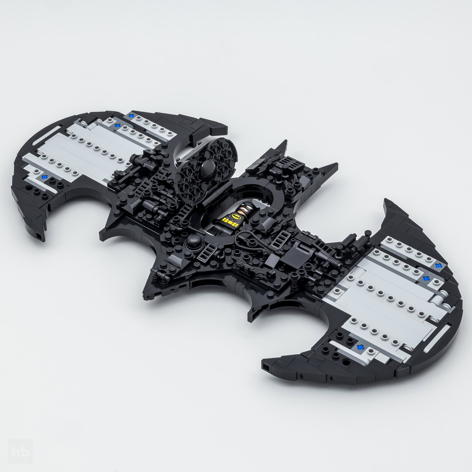 Vous le savez sans doute déjà, l'habillage de la face avant de la maquette est prétexte à y glisser quelques timides références à différents personnages de l'univers DC : un marteau et une paire de rollers pour Harley Queen, un fouet et un chat pour Catwoman, le chapeau du Riddler, celui du Pingouin avec un parapluie, une fleur et une plante pour Poison Ivy, le Bat-Spray de la série de 1966 un pistolet avec son drapeau pour le Joker, un grappin, un talkie, un pied de biche ou encore quelques Batarangs. Vous y verrez ce que vous voudrez, ça vous occupera cinq minutes.