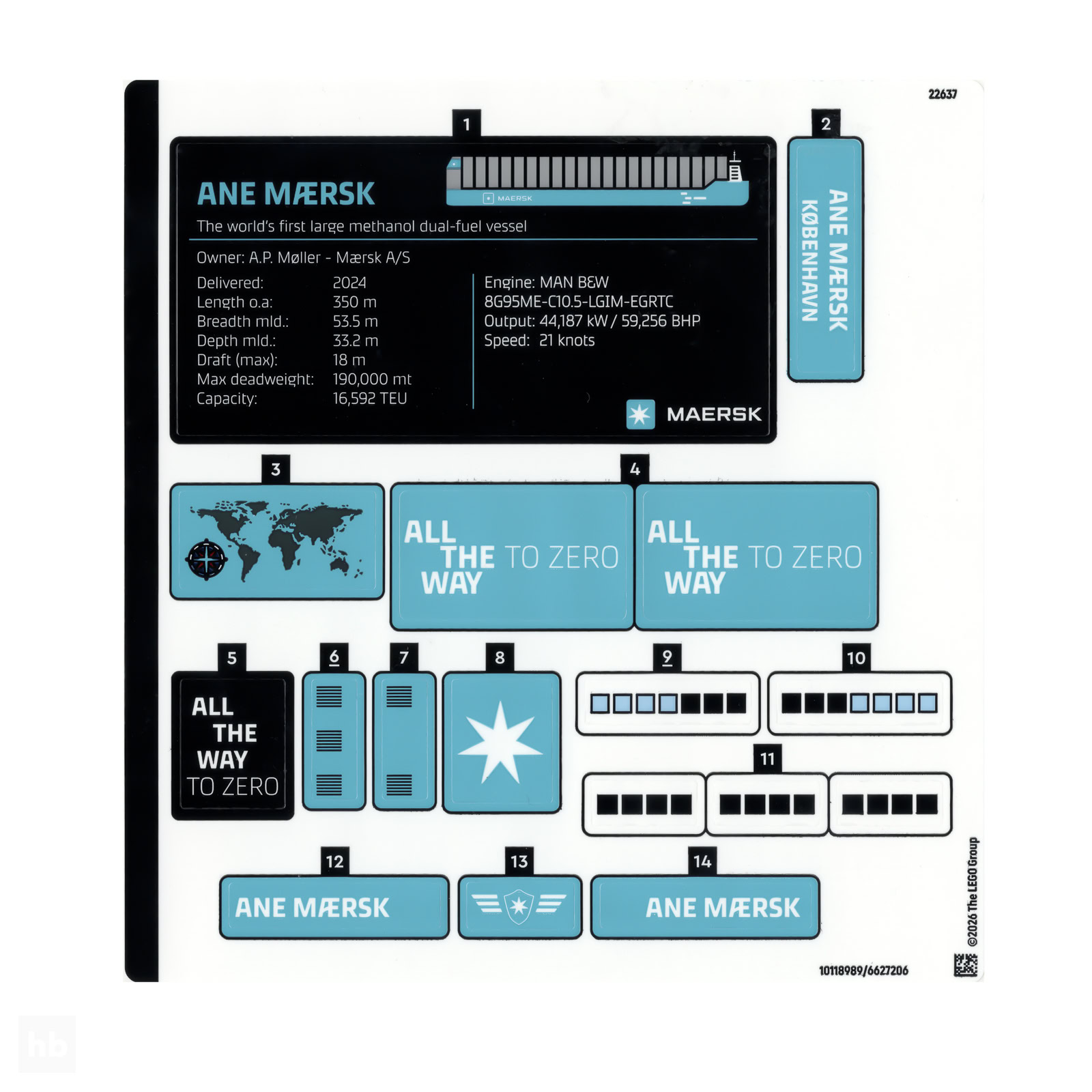 Ce nouveau produit fait la promotion du navire Ane Maersk, un porte-conteneurs construit en 2024 dont la propulsion fonctionne au méthanol ou au fuel conventionnel. C'est évidemment de la publicité déguisée en jouet de construction, il faut bien que les sociétés danoises se soutiennent entre elles.