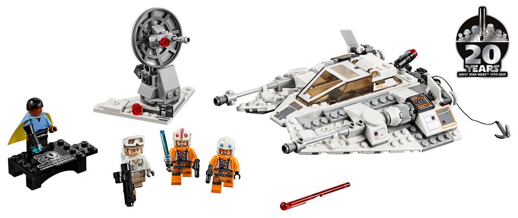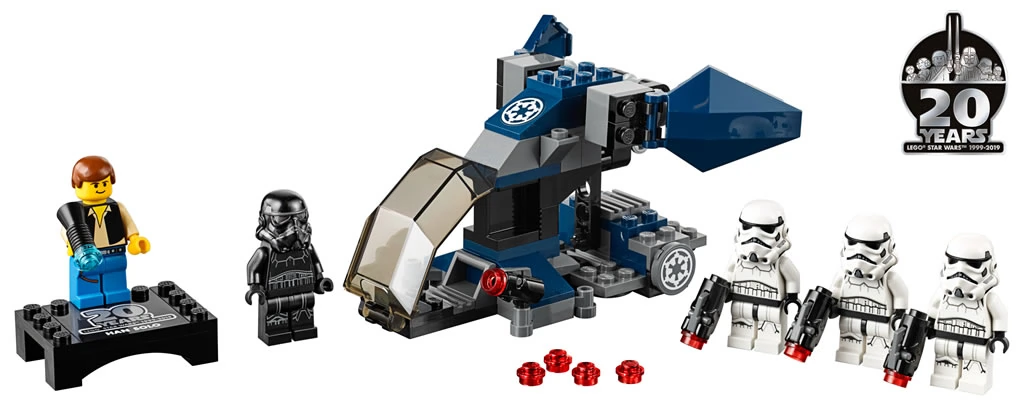 Dans chacune de ces boites, les collectionneurs trouveront une minifig exclusive avec le logo "20th Anniversary", déjà vu dans les pages du catalogue du premier semestre 2019, tampographié dans le dos du personnage. Chaque personnage (Princess Leia, Luke Skywalker, Lando Calrissian, Darth Vader et Han Solo) sera également livré avec un socle de présentation lui aussi exclusif et collector.