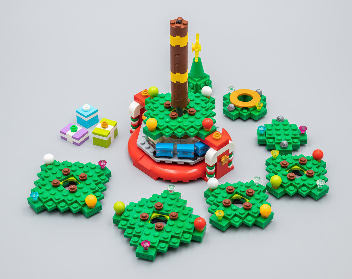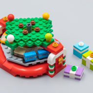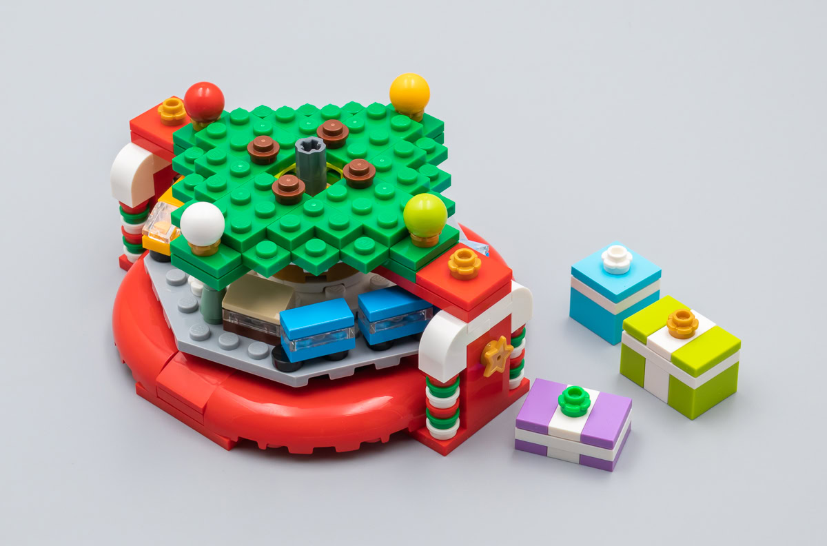 Cerise sur le gâteau, la construction est posée sur une base qui permet de faire tourner le manège de jouets placé au pied du sapin d'un geste de la main. La fonctionnalité est anecdotique, mais on ne va pas reprocher à un fabricant spécialisé dans le jouet de construction de faire un effort sur les possibilités offertes par un petit produit. J'étais un peu déçu en découvrant la fonction, je m'attendais sans trop savoir pourquoi à ce que l'intégralité du sapin tourne, mais ce n'est finalement que le manège qui se déplace. C'est pourtant logique.