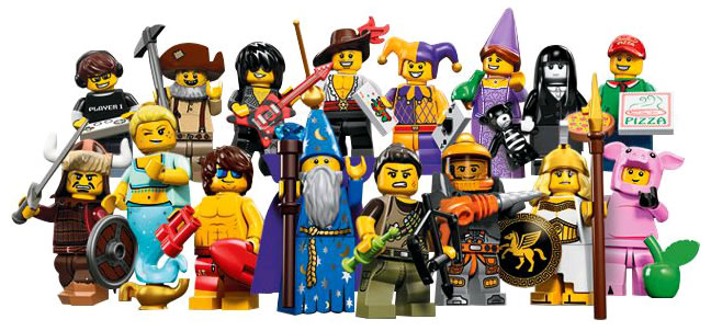 Voici les visuels des 16 minifigs de la série 12 attendue pour octobre prochain, avec dans l'ordre : Wizard, Video Game Guy, Swashbuckler, Spooky Girl, Space Miner, Rock Star, Prospector, Pizza Delivery Man, Piggy Guy, Lifeguard, Jester, Hun Warrior, Genie Girl, Fairytale Princess, Dino Tracker et Battle Goddess.