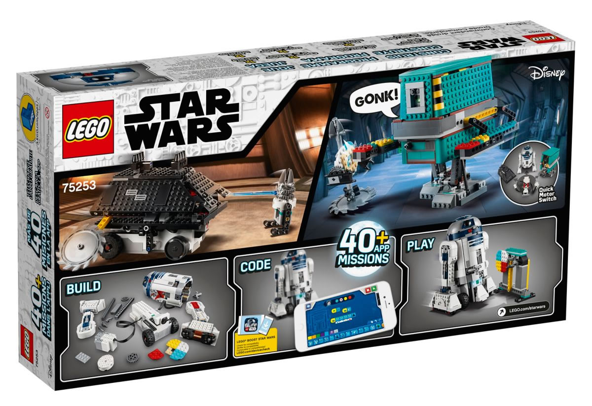 Avec le set 75253 (disponibilité annoncée pour le 1er septembre 2019), il s'agira d'assembler trois droïdes différents issus de l'univers Star Wars, R2-D2, Gonk et MSE-6 (Mouse Droid), et de leur permettre d'effectuer différentes actions grâce à l'application dédiée (iOS et Android), au hub Bluetooth, au moteur et au capteur fournis.