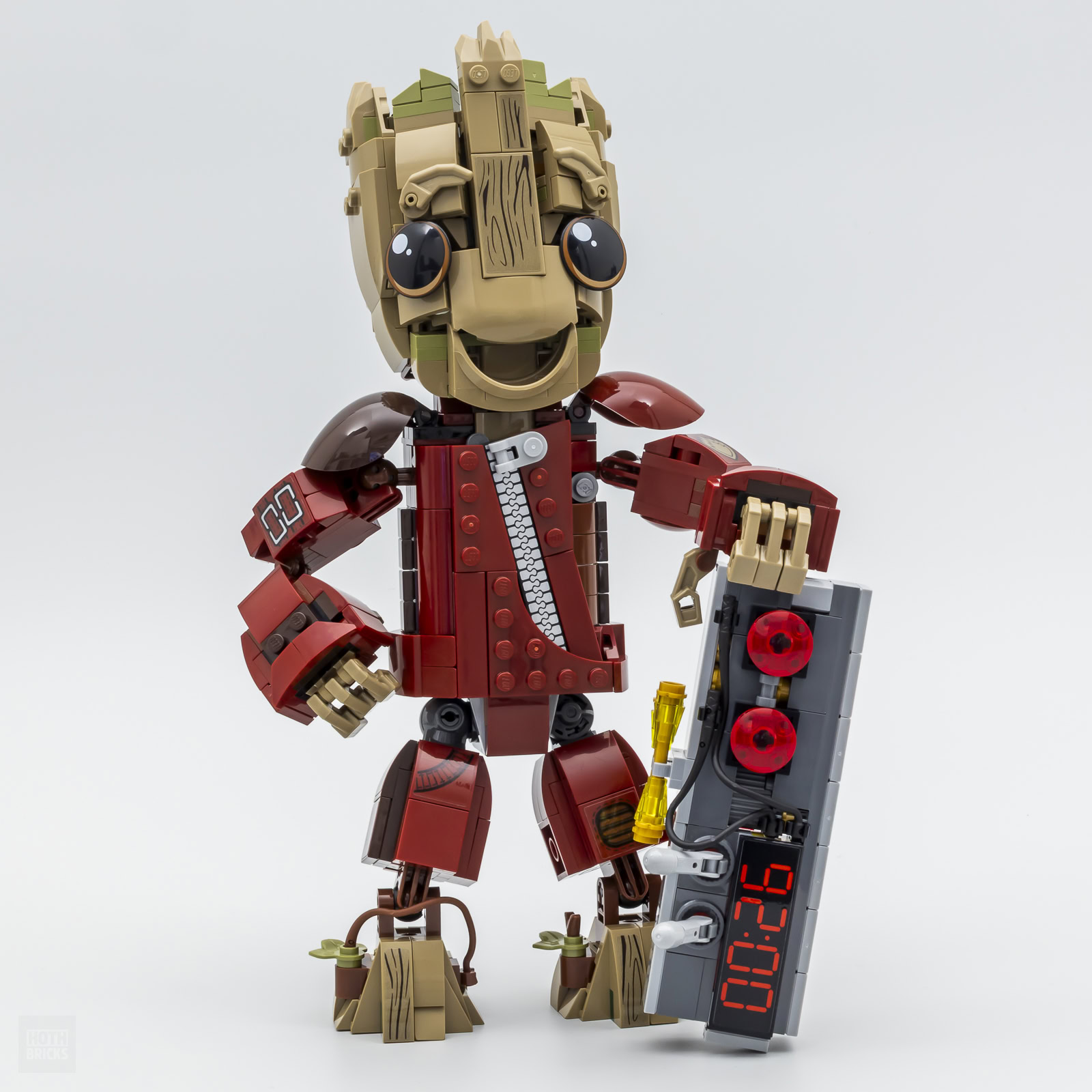 Avec à peine plus de 600 pièces au compteur dont une partie passe dans le détonateur, on se retrouve forcément avec quelques raccourcis au niveau de la finition du personnage et il faudra arriver à se satisfaire des points d'articulation qui restent bien visibles au niveau des hanches grises ou des chevilles marron foncé. Les pieds de Groot sont volontairement élargis pour assurer une stabilité sans faille à la figurine, il faudra cependant soigneusement chercher le point d'équilibre de l'ensemble dans certaines positions.
