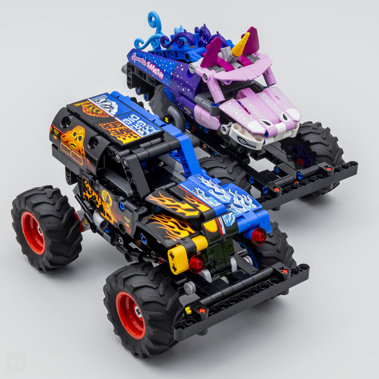 Parmi les nombreuses licences que LEGO essore au fil des années, il n'y a pas de que des franchises cinématographiques ou vidéoludiques de premier plan et le fabricant a dans son catalogue la licence Monster Jam qui est déclinée chaque année ou presque depuis 2021 en quelques boites de la gamme Technic destinées aux plus jeunes. En 2026, deux nouvelles références font leur apparition avec d'un côté une nouvelle version en deux teintes de l'emblématique Grave Digger et de l'autre le très flashy Sparkle Smash :