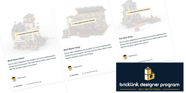 Si vous suivez l'évolution du Bricklink Designer Program 2021, vous avez sans doute remarqué que les trois projets de Robert Bontenbal alias Robenanne, Boat House Diner, Boat Repair Shop et The Dive Shop étaient désormais aux abonnés absents, la plateforme indiquant que ces trois créations ont été "archivées" en raison "d'autres obligations" qui ont forcé le designer à les retirer.