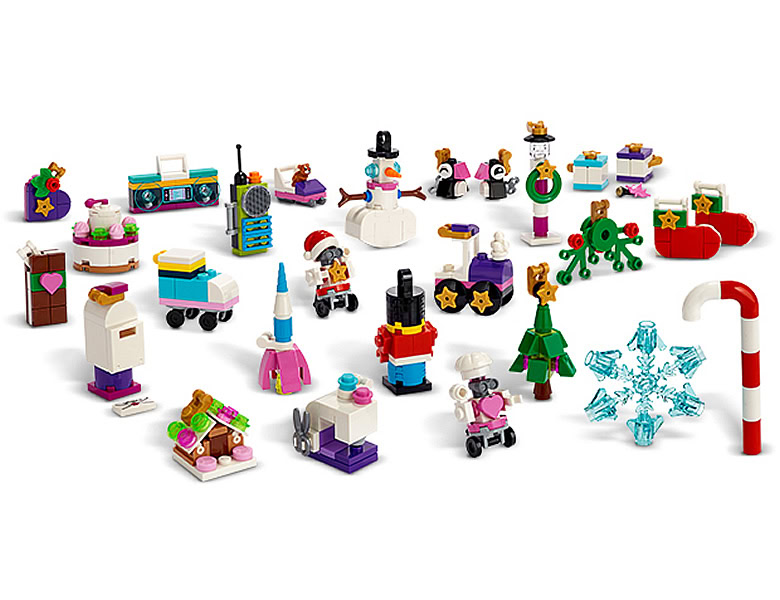 Du côté du calendrier de l'Avent LEGO Friends (réf. 41382), LEGO ne fournit qu'une seule mini-doll dans la boite, celle de Mia. Le reste de l'inventaire (336 pièces) permettra d'assembler les mini-machins ci-dessous.