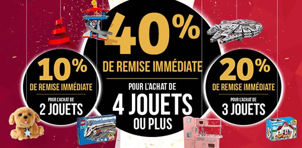 Pendant ce temps, chez Cdiscount, c'est 40% de remise immédiate pour l'achat de 4 jouets parmi les références concernées par l'offre (avec le code ENCOREPLUS). C'est vous qui voyez.