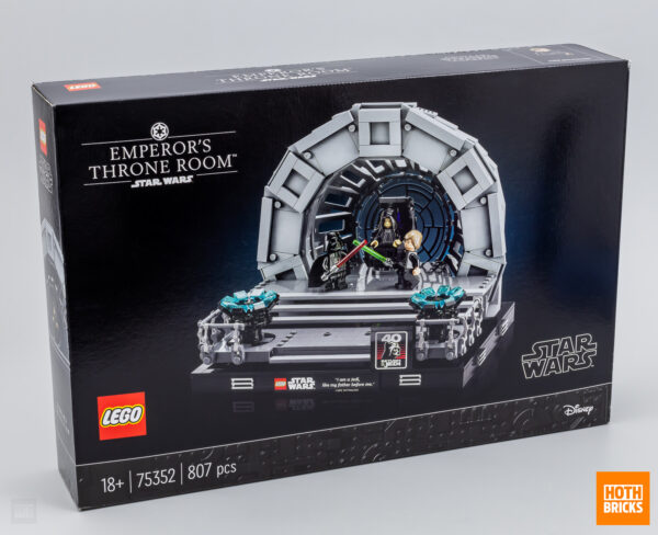 On garde le rythme et on enchaîne aujourd'hui avec la mise en jeu d'un exemplaire du set LEGO Star Wars 75352 Emperor's Throne Room Diorama, une boite de 807 pièces disponible sur la boutique officielle en ligne au prix public de 99.99 €.