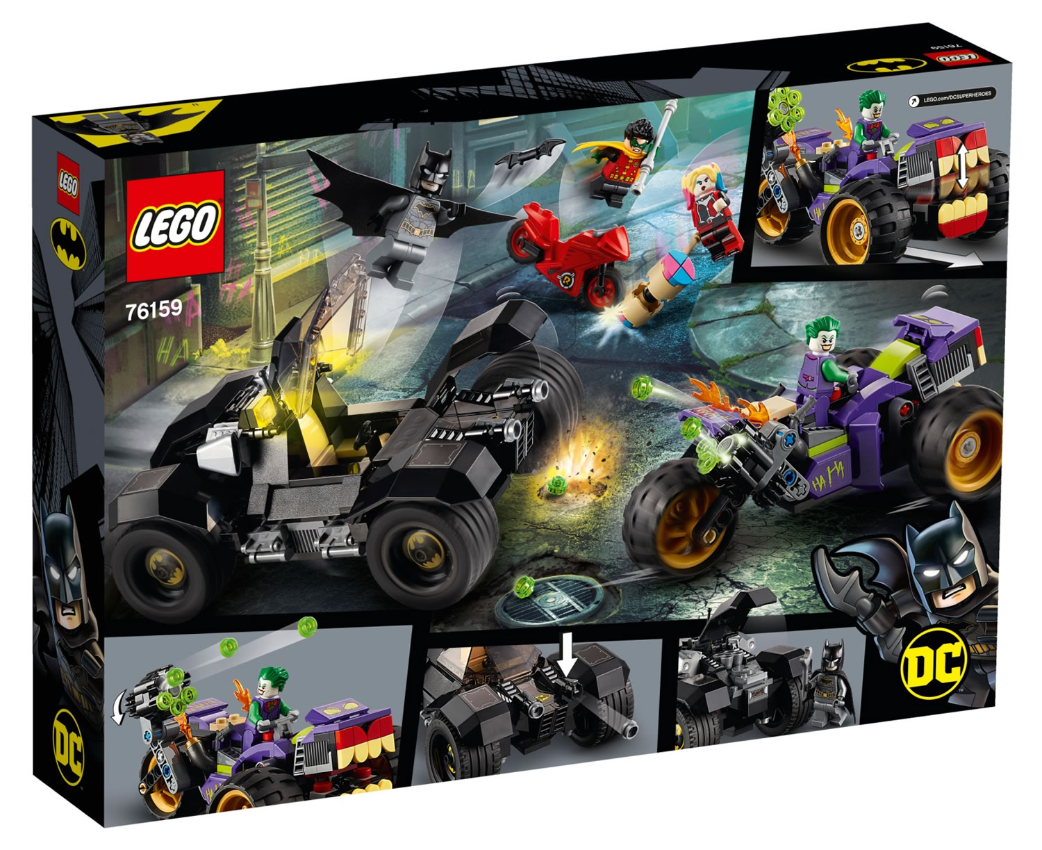 On fait aujourd'hui une incursion dans l'univers DC Comics avec le set 76159 Joker's Trike Chase, une des trois boites de la gamme commercialisées depuis début juin 2020. Vendu 54.99 €, ce petit set de 440 pièces propose d'assembler une nouvelle Batmobile, une moto à trois roues pour le Joker et permet de s'amuser sans nécessairement devoir repasser à la caisse pour équilibrer les forces en présence.