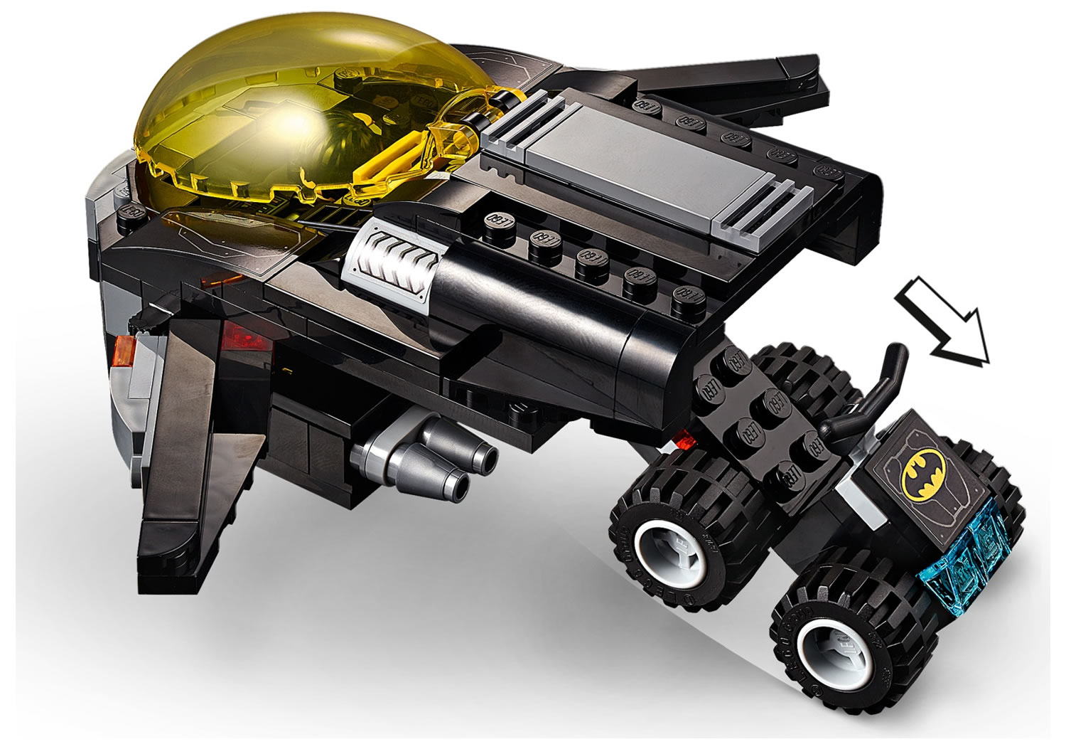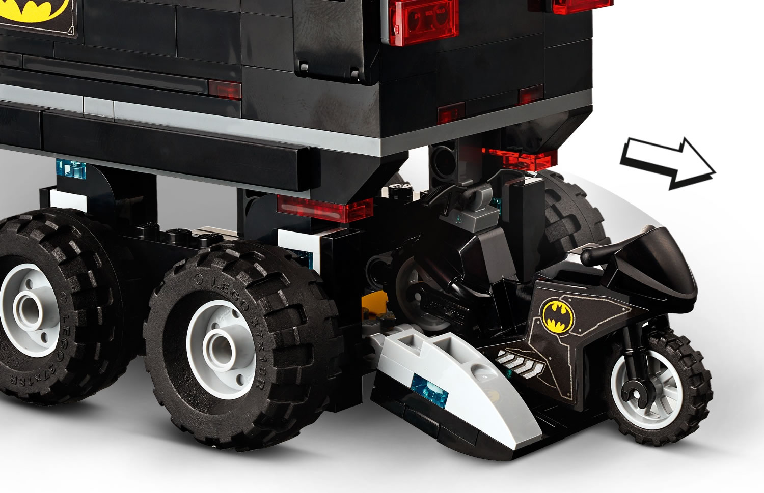 Enfin, les quatre roues sont habillées de pièces tampographiées du logo du patron déjà utilisées en 2019 sur les bat-véhicules des sets 76119 Batmobile : Pursuit of the Joker et 76122 Batcave Clayface Invasion.
