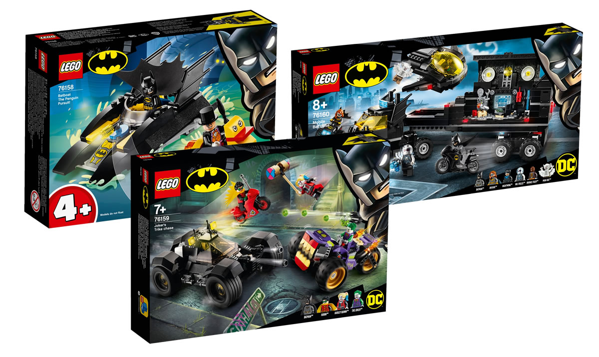 Au menu : Batman dans toutes les boites avec The Penguin dans le set 76158 Batman : The Penguin Pursuit, Robin, The Joker et Harley Quinn dans le set 76159 Batman : Joker's Trike Chase et Manbat, Bronze Tiger, Mr Freeze, Nightwing et Batgirl dans le set 76160 Batman : Mobile Bat-Base.