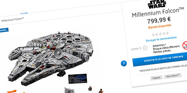 Mauvaise nouvelle pour tous ceux qui ont raté la mise en vente anticipée du set 75192 Millennium Falcon : Il n'y en aura pas dans les rayons le 1er octobre prochain.