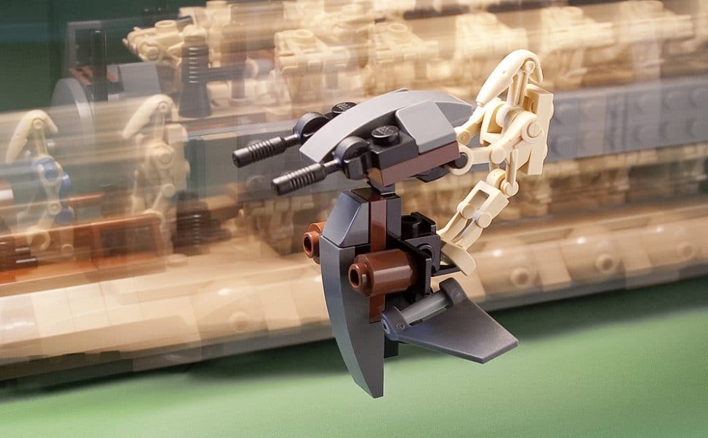 Aujourd'hui Calin nous présente sa minifig custom de Dooku avec un visage sérigraphié par Christo et une chevelure conçue par Calin. Cette superbe photo met également en scène deux Assassin Droids customs particulièrement réussis.