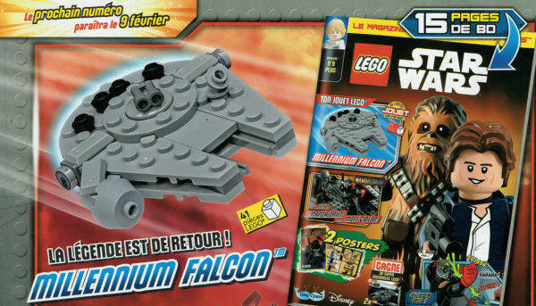 Le prochain numéro du magazine est attendu en kiosque pour le 9 février 2022 et il permettra d'obtenir un Millennium Falcon de 41 pièces différent de ceux déjà livrés avec le magazine en 2016 puis en 2019.