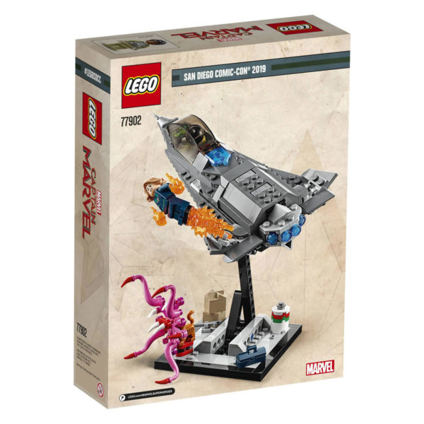 LEGO dévoile aujourd'hui l'un des sets exclusifs au prochain San Diego Comic Con 2019 (18-21 juillet 2019) : la référence 77902 Captain Marvel and the Asis (271 pièces) avec l'Asis (le super jet) et les minifigs de Captain Marvel (Carol Danvers) et Maria Rambeau accompagnées de Goose le Flerken déguisé en chat.