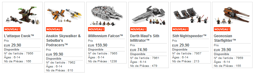 Etonnament, les sets 7962 et 7965 sont ceux dont le coût à la pièce reste le plus raisonnable, et ce sont également ceux que je considère comme les plus intéressants de cette vague de nouveautés. Le set 7959 avec ses 0.25 cents/pièce est bien trop cher pour ce qu'il offre tant en terme de contenu que de quantité de pièces.... Même constat pour le set 7956....
