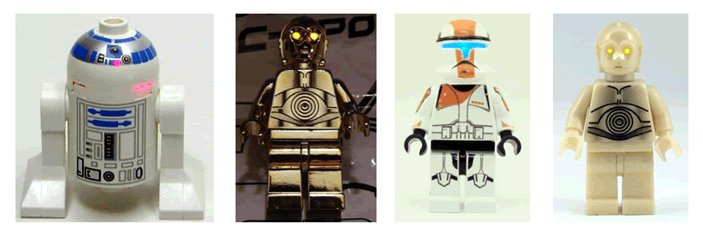 En vrac, on trouve ainsi un C-3PO Chrome Gold, un R2-D2, un Iron Man ou encore quelques minifigs customs. Le résultat est bluffant et apporte vraiment une touche de surréalisme à ces minifigs.