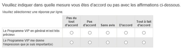 Au milieu des rubriques habituellement présentes dans ce type d'enquête qui permettent de qualifier votre profil, on trouve quelques questions qui semblent confirmer que le programme VIP sous sa forme actuelle pourrait être amené à évoluer en fonction des réponses des clients.