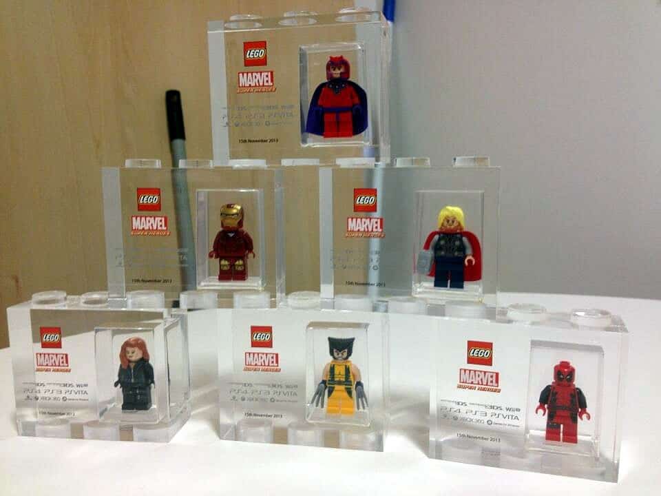 La photo ci-dessous regroupe la collection personnelle de trophées d'Arthur Parsons, Game Director sur LEGO Marvel Super Heroes et qui a travaillé sur la plupart des jeux LEGO sortis à ce jour.