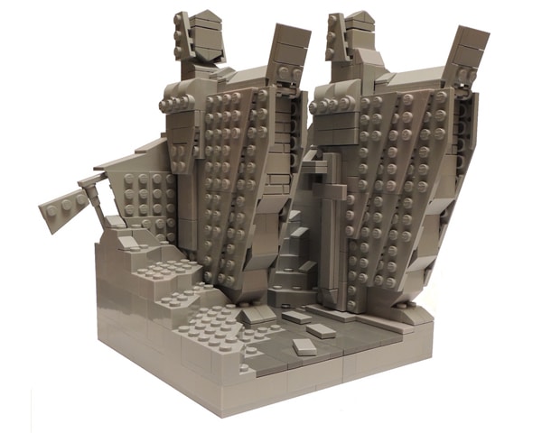Voilà un micro-MOC qui mérite un clin d'oeil ici. Trouvée sur Brickshelf (Dans la galerie de YU, mais je ne suis pas certain qu'il soit l'auteur de ce MOC), cette reproduction des Pillars of the Kings ou Gates of Argonath vus dans le premier volet de la trilogie Lord of the Rings, a immédiatement attirée mon regard d'amateurs de MOCs compacts mais détaillés...