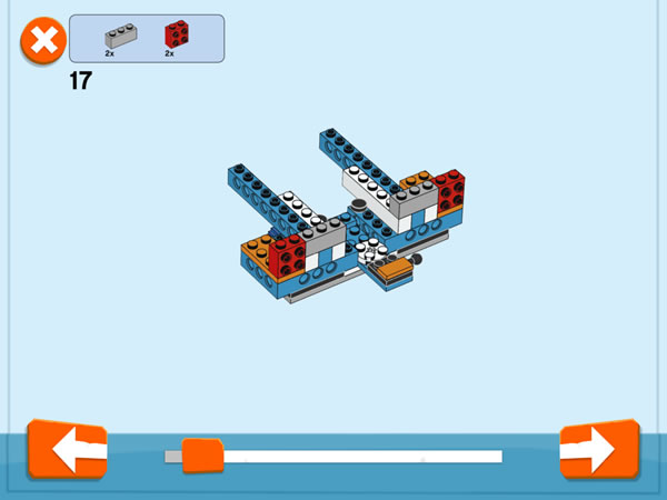 Les étapes de montage présentées sur la tablette sont identiques à celles habituellement présentes dans les livrets au format papier. Pas de rotation 3D de l'assemblage en cours, ce qui aurait pourtant été utile pour permettre aux plus jeunes de mieux appréhender le placement des pièces sous différentes perspectives.