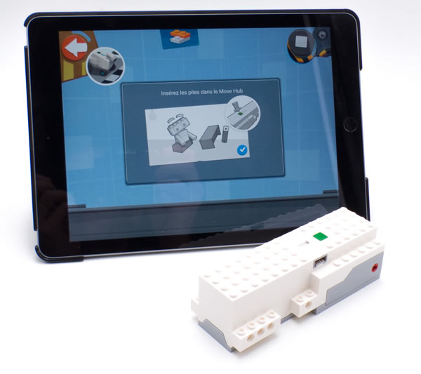La brique "intelligente", le Move Hub, est alimentée par six piles AAA qui seront elles aussi rapidement vides. Ces piles peuvent heureusement être remplacées sans tout démonter. Une batterie rechargeable avec un port micro-USB aurait été la bienvenue, nous sommes en 2017...