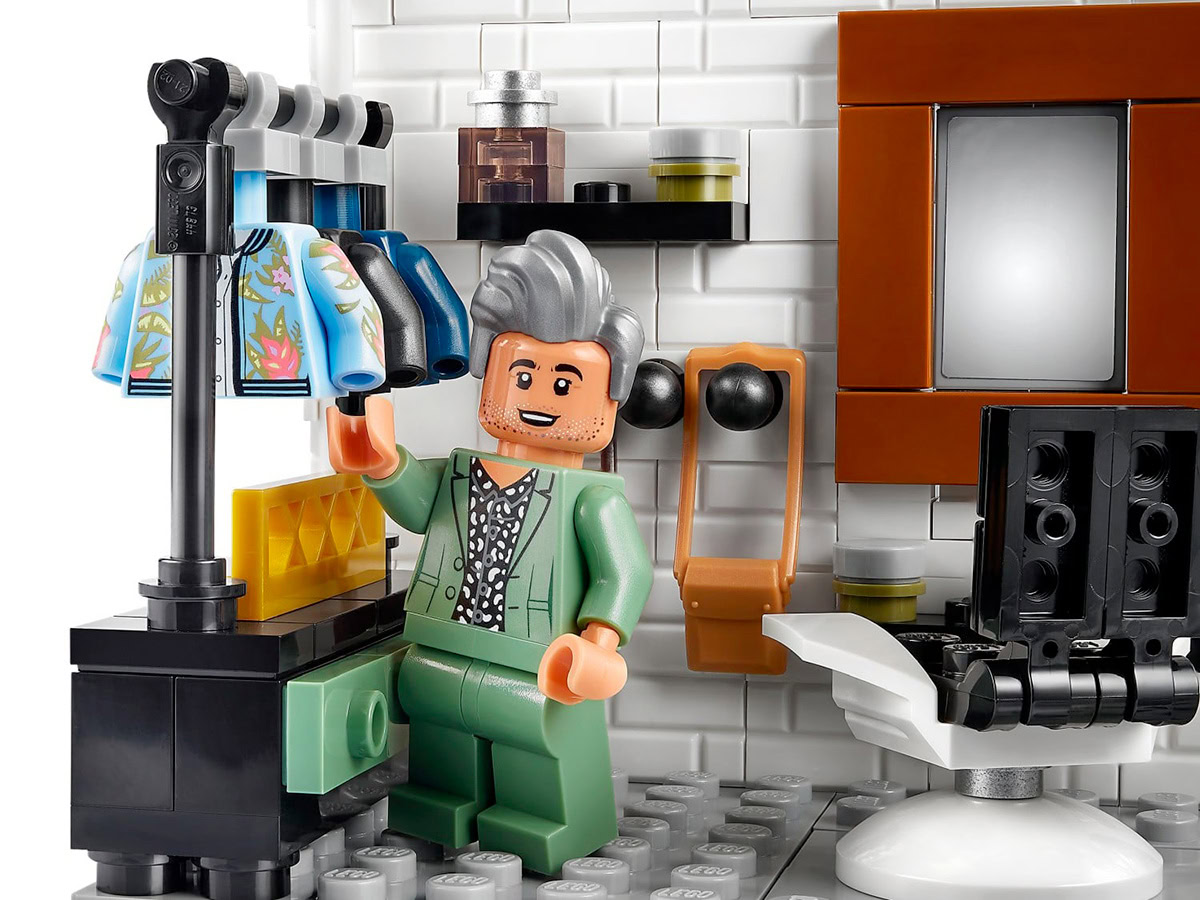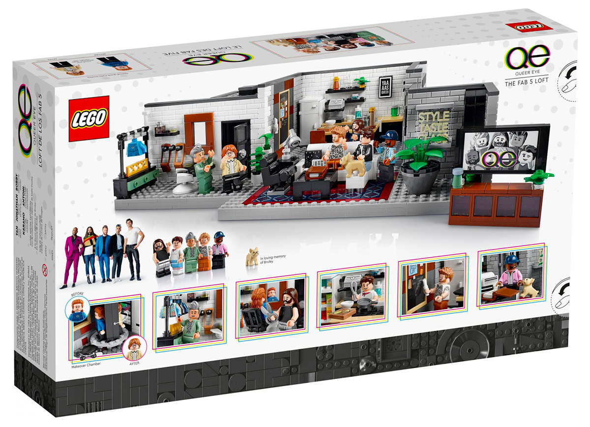 Dans la boite, 974 pièces pour assembler une reproduction de l'appartement des cinq intervenants : Tan France, Jonathan Van Ness, Bobby Berk, Karamo Brown et Antoni Porowski, accompagnés de leur bouledogue français Burley, mort en 2019. LEGO ajoute deux versions de Kathi Dooley, une participante de la quatrième saison de l'émission qui avait accepté de se faire relooker par les cinq experts.