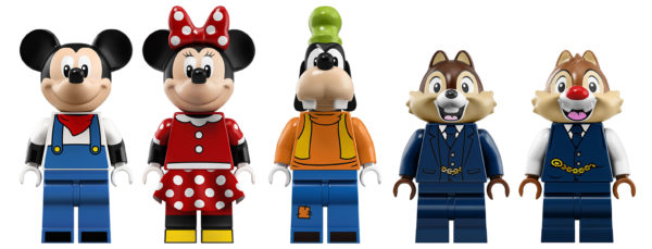 Le gros bonus du set qui fera peut-être râler quelques collectionneurs de minifigs Disney qui se passeraient volontiers du train et de la gare : Les cinq personnages fournis dont Mickey, Minnie, Tic et Tac dans des variantes inédites et Dingo (Goofy) qui est pour l'instant exclusif à cette boite.