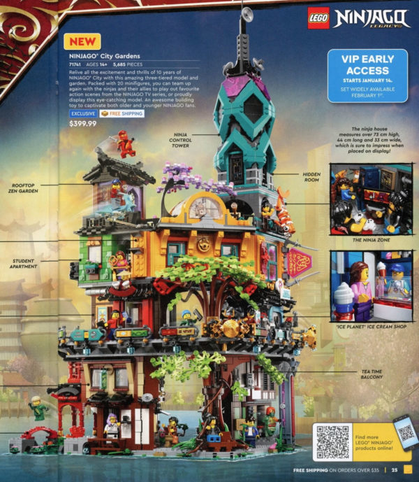 C'est dans les pages d'un catalogue officiel canadien qui circulent actuellement sur les réseaux sociaux qu'on découvre le premier visuel du set LEGO 71741 Ninjago City Gardens, la grosse boite de 5685 pièces et 19 minifigs qui viendra compléter les deux portions de la mégalopole déjà commercialisées : les sets 70620 Ninjago City (2017) et 70657 Ninjago City Docks (2018).