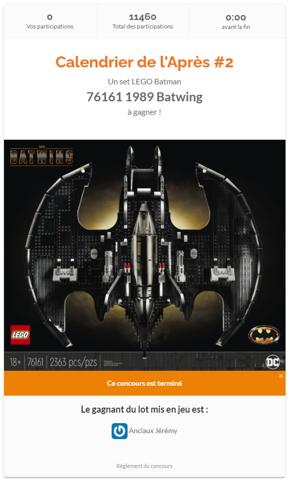 Note : Le set présenté ici, fourni par LEGO, est comme d'habitude mis en jeu. Date limite fixée au 19 février 2022 prochain à 23h59.