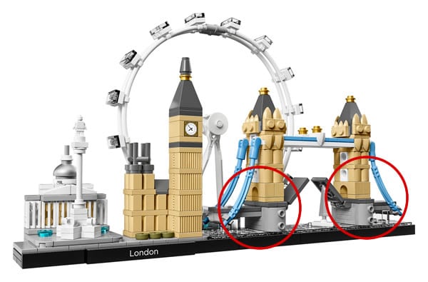 C'est justement le propos de cette gamme que de reproduire des monuments à une échelle qui impose de détourner l'usage principal de certaines pièces pour leur faire incarner des détails architecturaux, mais on atteint visiblement ici les limites du concept et le symbolisme devient un peu caricatural.