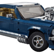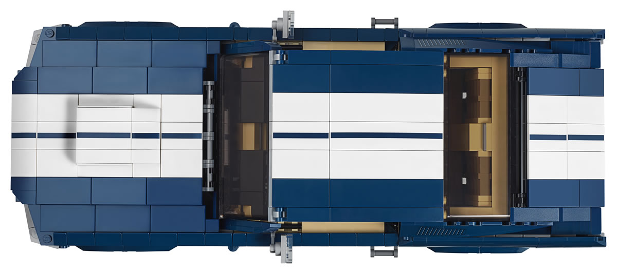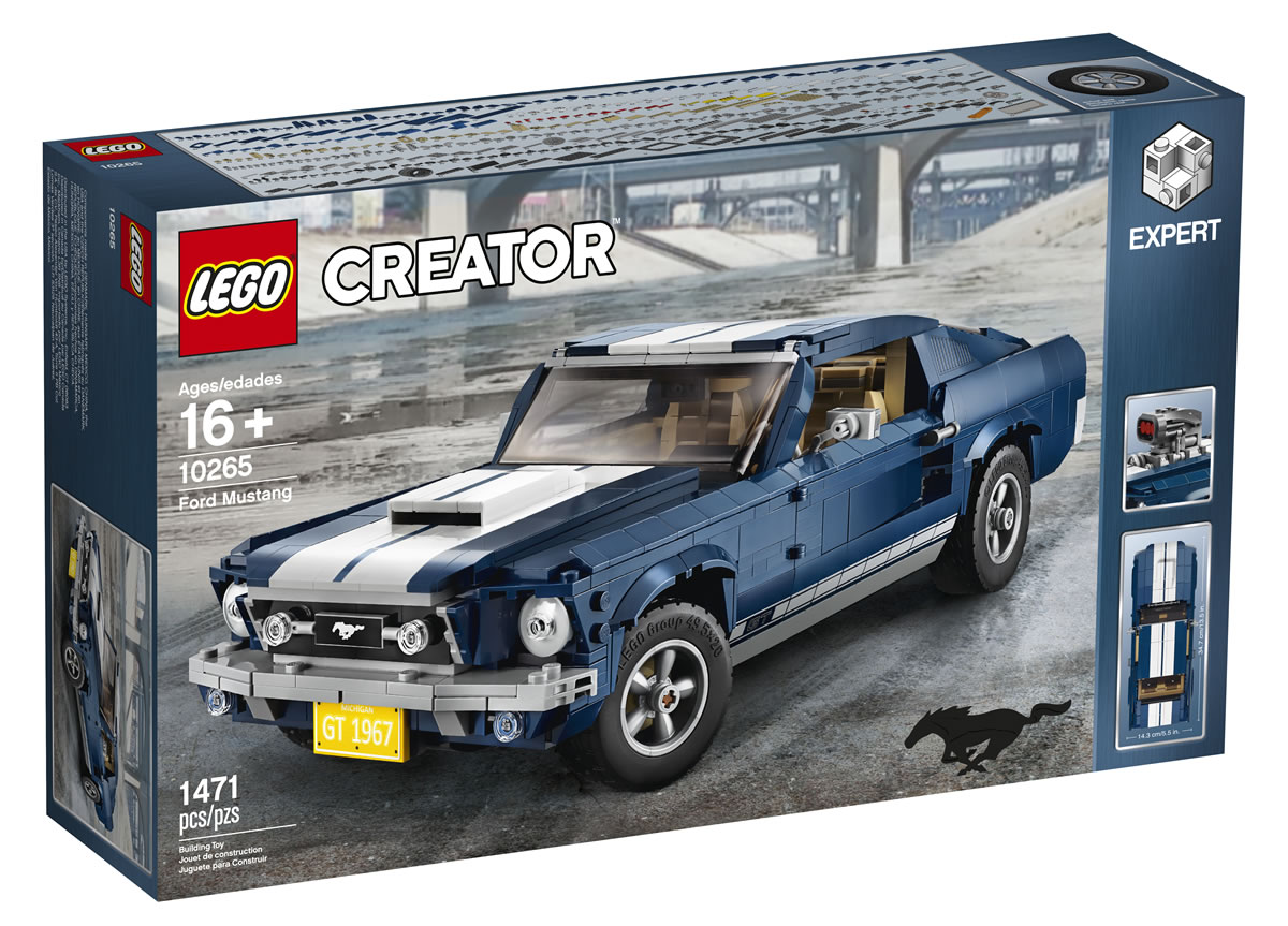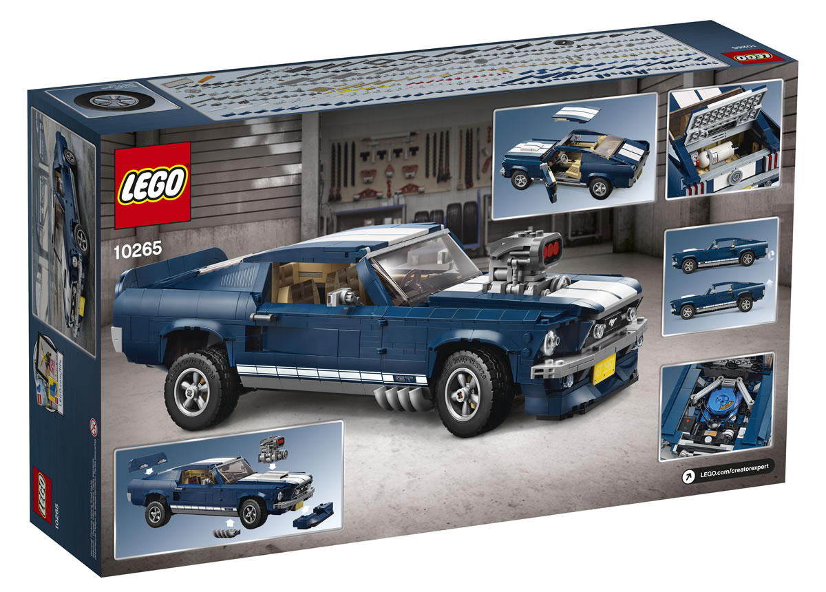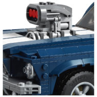 Cette Mustang Fastback de 1967 à la sauce LEGO a été développée en partenariat avec Ford, elle mesure 34 cm de long et 14 cm de large, et elle est livrée avec une série d'équipements additionnels, dont une bonbonne de NOS (Nitrous Oxide Systems) à placer dans le coffre, qui permettront de personnaliser et de muscler le véhicule.