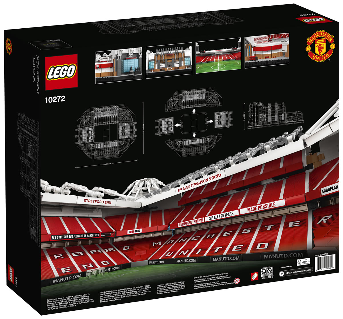LEGO dévoile aujourd'hui "officiellement" le set LEGO Creator Expert 10272 Old Trafford - Manchester United (3898 pièces - 269.99 € / 299.00 CHF), une boite dont quelques visuels étaient déjà disponibles depuis plusieurs jours sur les réseaux sociaux. On savait depuis déjà quelques semaines que LEGO et le club de Manchester United avaient mis en place un partenariat, et ce set est donc le premier produit dérivé aux couleurs du club.