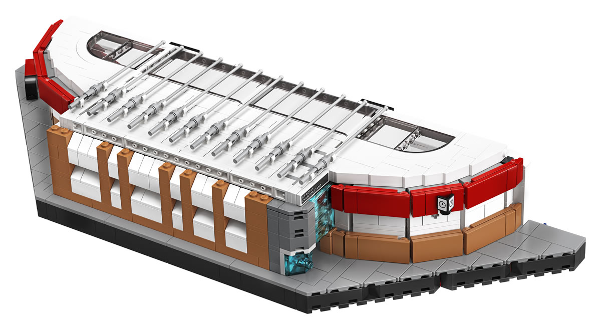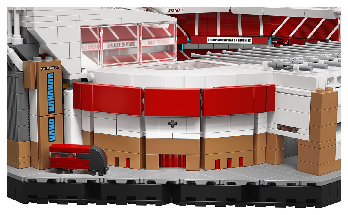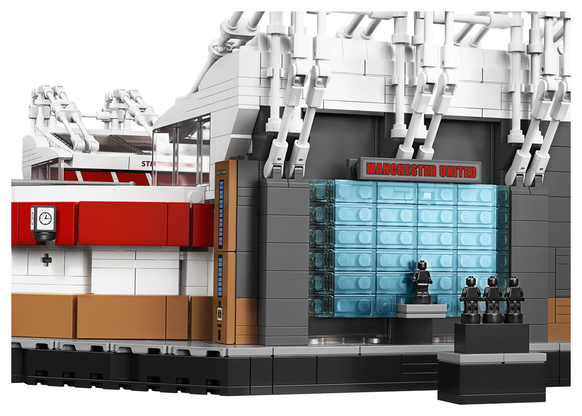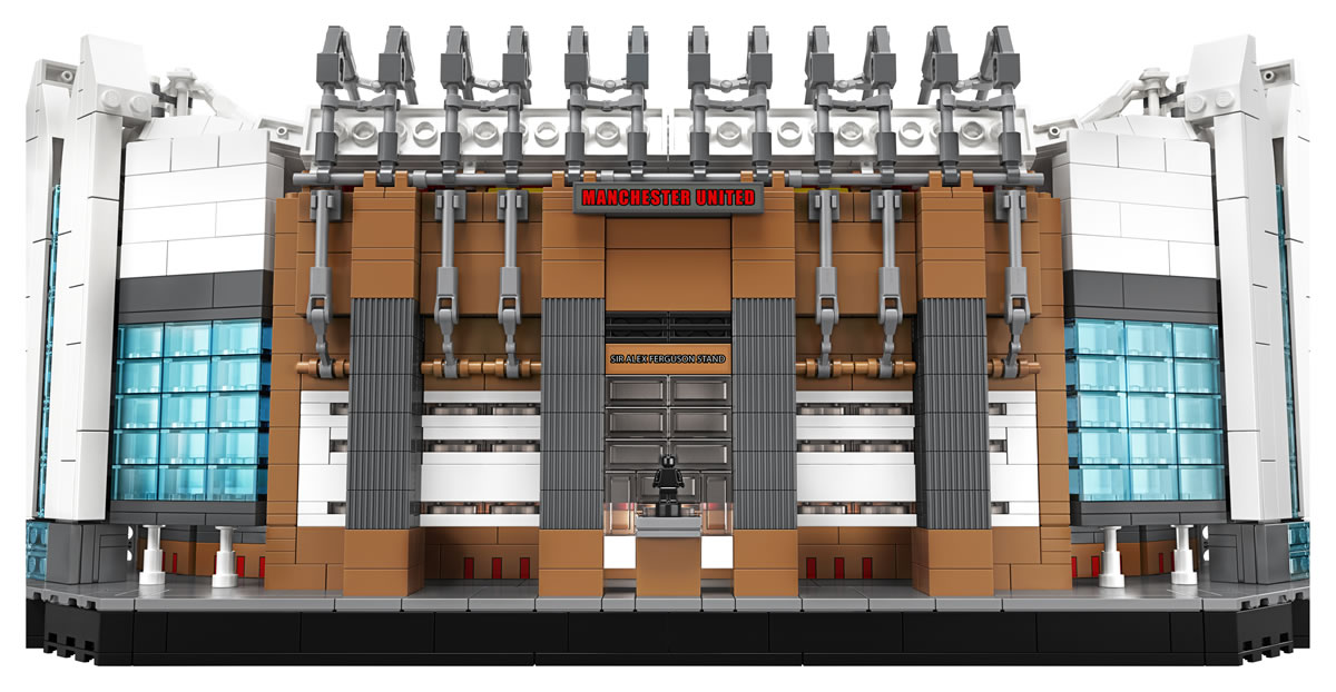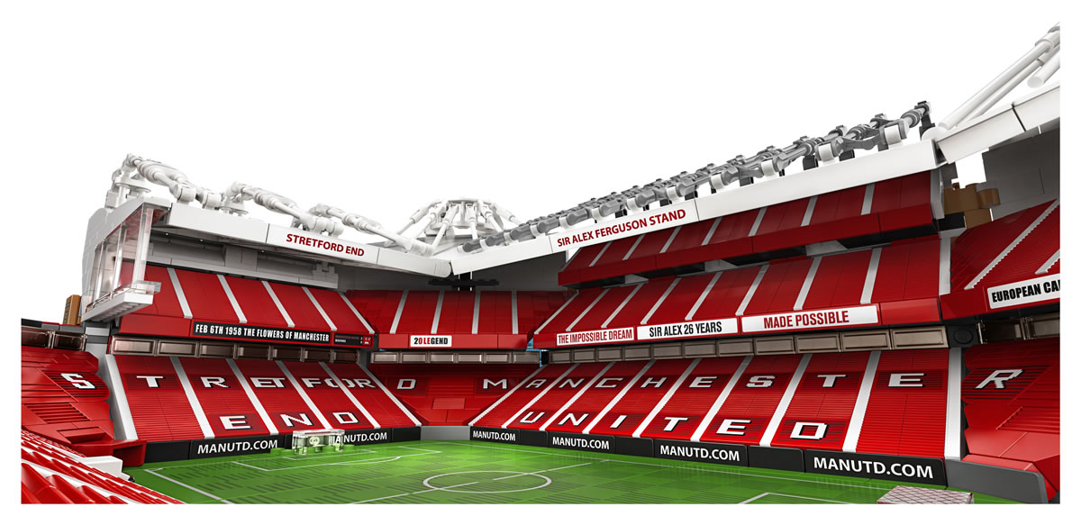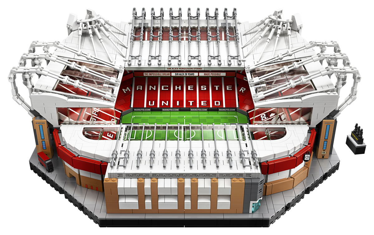 Ce crossover entre les gammes LEGO Architecture et Creator Expert permet d'assembler une reproduction du stade mancunien qui occupera une surface de 47 x 39 cm sur vos étagères. Je ne suis pas un fan inconditionnel de l'équipe de Manchester United et encore moins de son stade de résidence qui fête cette année ses 110 ans, mais la version LEGO me semble plutôt réussie si on la compare à la version réelle.