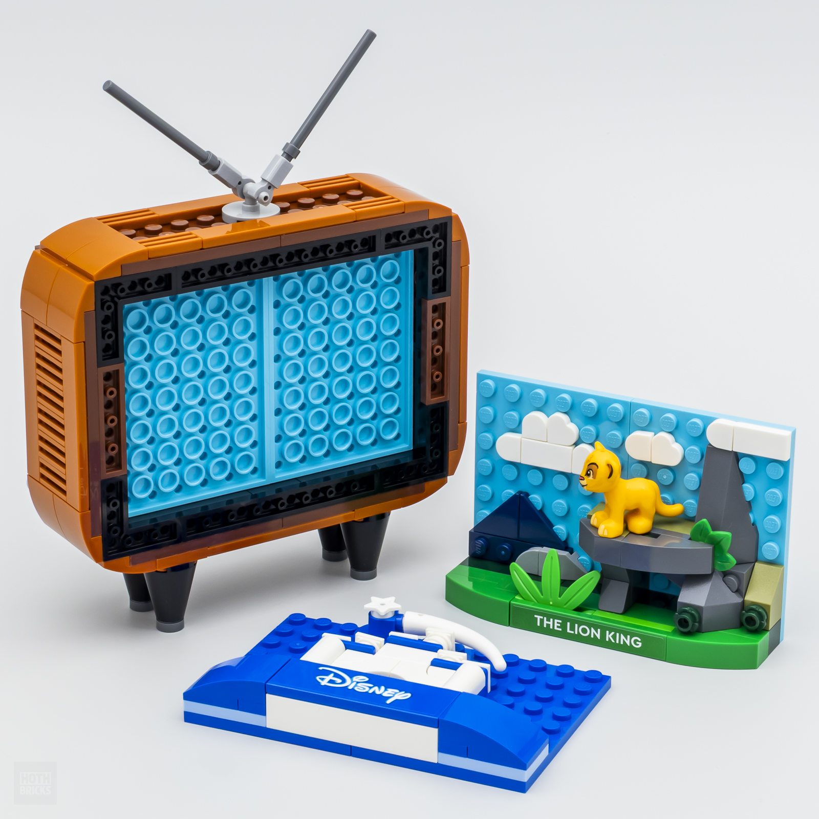 Dans cette petite boite de 270 pièces, de quoi assembler un téléviseur vintage et trois inserts interchangeables dont un avec le logo emblématique Disney et deux qui rendent respectivement hommage à Toy Story et au Roi Lion. En bonus, une minifig de Woody et une figurine de Simba.