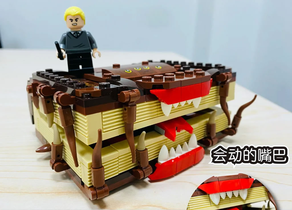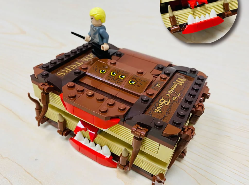 Dans la boite, de quoi assembler une reproduction du livre énervé qui fait sa première apparition dans Harry Potter et le prisonnier d'Azkaban. La construction est équipée d'un mécanisme qui met en mouvement le livre lors des déplacements et elle est accompagnée d'une minifig de Draco Malfoy dont le torse n'est pas inédit ni exclusif. L'élément apparait en effet dans les sets 75954 Hogwarts Great Hall (2018) et 40419 Hogwarts Students (2020)