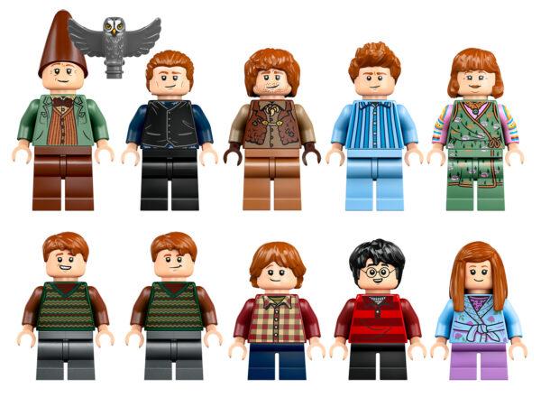 Dans la boite, de quoi assembler la demeure avec quelques fonctionnalités intégrées comme la vaisselle qui se fait d'elle-même ou la cheminée qui permet de simuler l'effet de la poudre de Cheminette et 10 minifigs : Harry Potter, Ron Weasley, Ginny Weasley, Fred Weasley, George Weasley, Molly Weasley, Arthur Weasley, Percy Weasley, Bill Weasley et Charlie Weasley. La chouette Errol complète le casting.