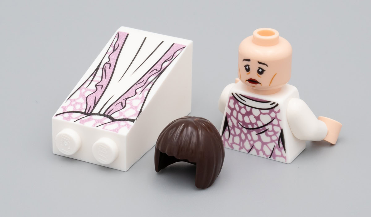 L'hippogriffe Buck profite à mon avis un peu plus du passage à la moulinette BrickHeadz avec un assortiment de gris qui colle à peu près à la version vue à l'écran et un look général qui reste acceptable compte-tenu des limitations du format. C'est d'ailleurs souvent le cas lorsqu'il s'agit de personnages qui n'ont pas forme humaine. On peut au choix y voir une réinterprétation artistique de la créature ou un massacre pour essayer rester dans les clous du concept, c'est vraiment à chacun de décider.