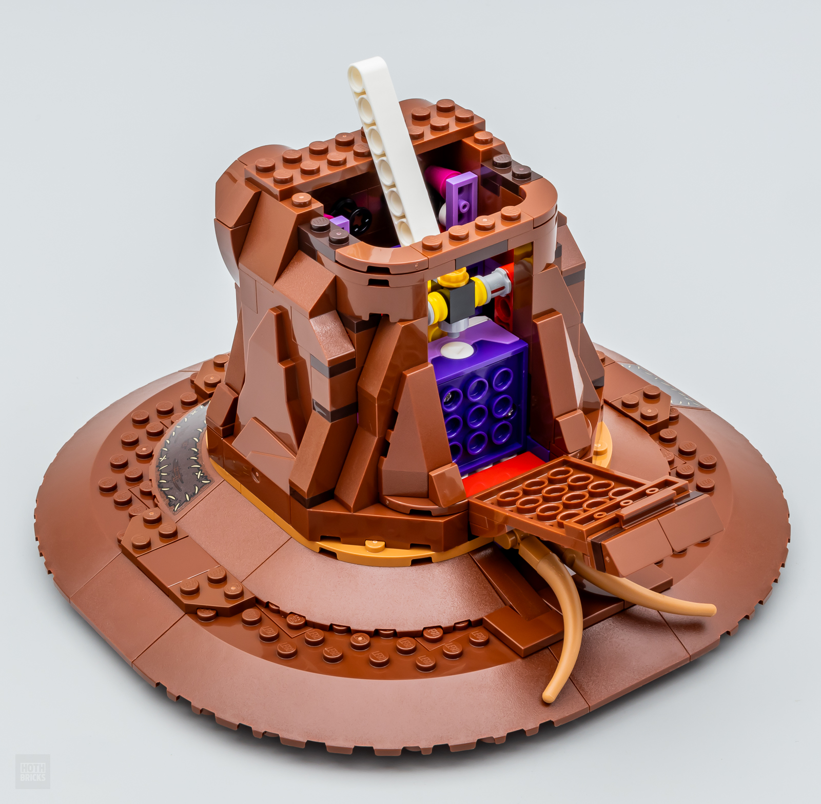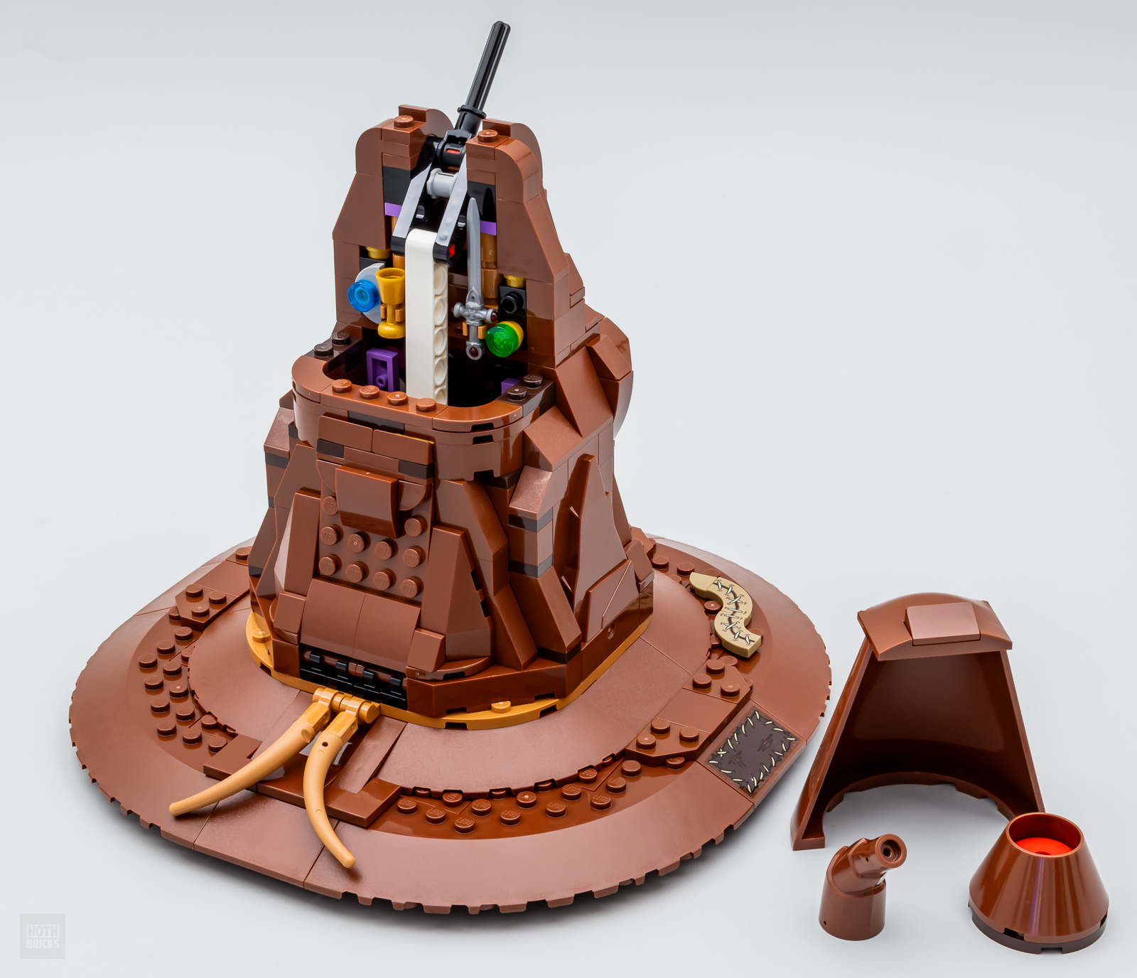 Tout ça n'est finalement qu'un prétexte pour le fournir un nouvel exemplaire du mécanisme qui sert à "voyager" en faisant disparaître une minifig dans la cheminée et qui est aussi présent dans le set 76437 The Burrow Collectors’ Edition.
