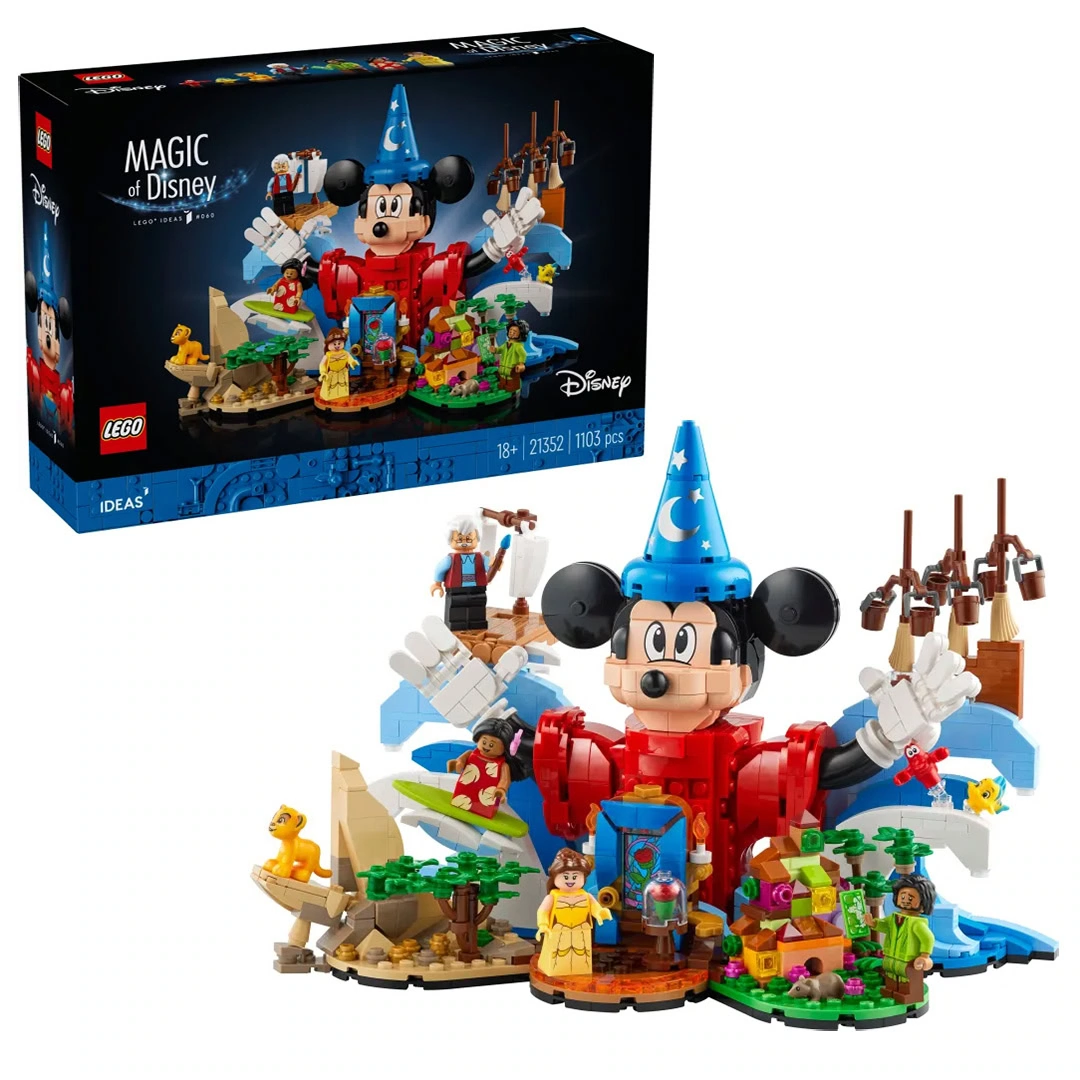 Quatre minifigs inédites seront livrées dans cette boite : Belle (La Belle et la Bête), Gepetto (Pinocchio), Lilo (Lilo & Stitch) et Bruno (Encanto), Trois autres figurines accompagneront ces personnages : Simba (Le Roi Lion), Sébastien et Polochon (La Petite Sirène). Les différents personnages seront mis en scène dans de petits dioramas placé au pied du buste de Mickey qui est lui de son côté en version Fantasia.