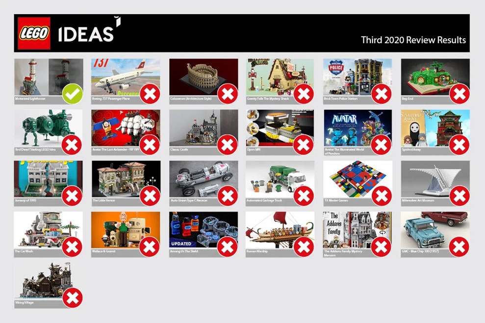 LEGO vient d'annoncer le résultat de la troisième phase d'évaluation LEGO IDEAS de l'année 2020, avec une fournée qui regroupait 25 idées plus ou moins réussies mais qui avaient toutes su rassembler les 10.000 soutiens nécessaires à leur passage à l'étape de review. C'est le projet Motorized Lighthouse soumis par Roses Must Build (Sandro Quattrini) qui est le seul à être définitivement validé.