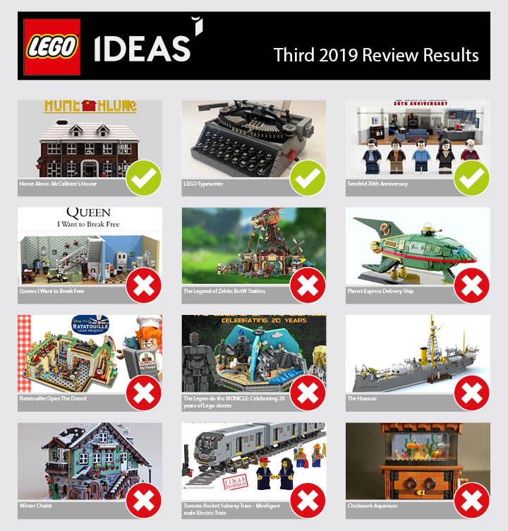 Comme promis, LEGO vient d'annoncer le résultat de la troisième phase d'évaluation 2019 qui regroupait une douzaine d'idées plus ou moins réussies qui avaient toutes su rassembler les 10.000 soutiens nécessaires et trois projets ont été retenus :