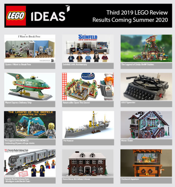 Avant de savoir lequel ou lesquels de ces douze projets finiront sur nos étagères, LEGO dévoilera prochainement les résultats de la seconde phase d'évaluation 2019 qui regroupe les onze projets ci-dessous. À vos pronostics...