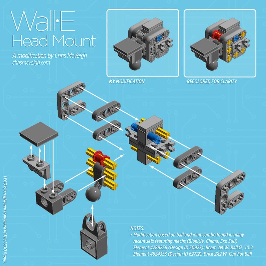 Voici de quoi occuper tous ceux qui ont acheté le set LEGO IDEAS 21303 WALL-E et qui veulent modifier le support de fixation de la tête pour lui redonner un peu de rigidité.