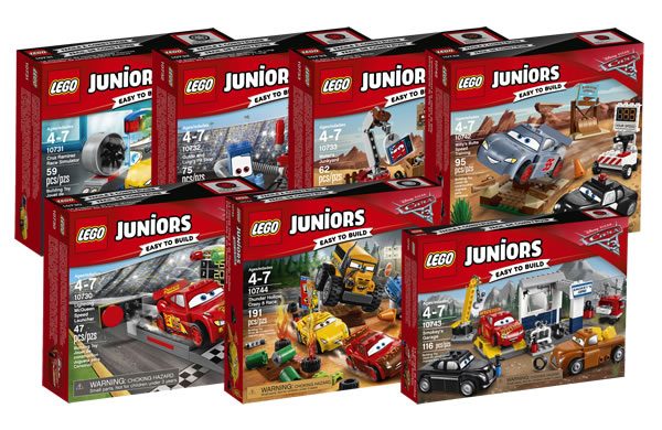 Huit nouvelles boites System basées sur le troisième épisode des aventures de Flash McQueen et ses acolytes seront commercialisées dans la gamme LEGO Juniors qui se compose de produits "faciles à construire" et qui a au moins le mérite de garantir aux fans l'absence de stickers. Trois sets DUPLO sont également annoncés.