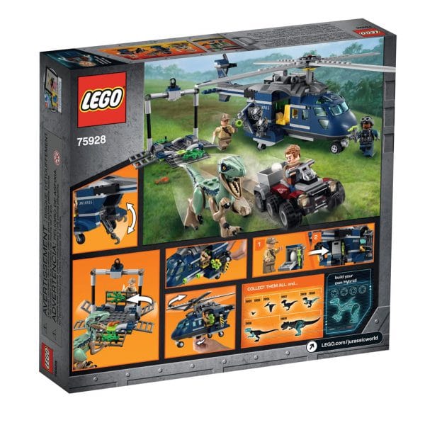 On découvre en effet au dos de la boite du set 75928 Blue's Helicopter Pursuit une incitation à la collection avec en bout de course la possibilité de combiner les différents éléments des dinosaures fournis pour créer votre propre race hybride.