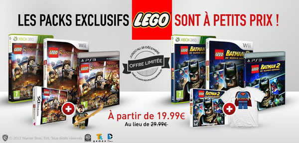A noter une offre (qui ne doit pas être cumulable, mais sait-on jamais...) : Jusqu'au 1er décembre 2013, dès 25€ d'achat dans la vitrine LEGO, un bon de réduction de 10€ sera crédité sur votre compte client. L'offre est limitée à un seul bon d'achat par compte client (même nom, même adresse mail).