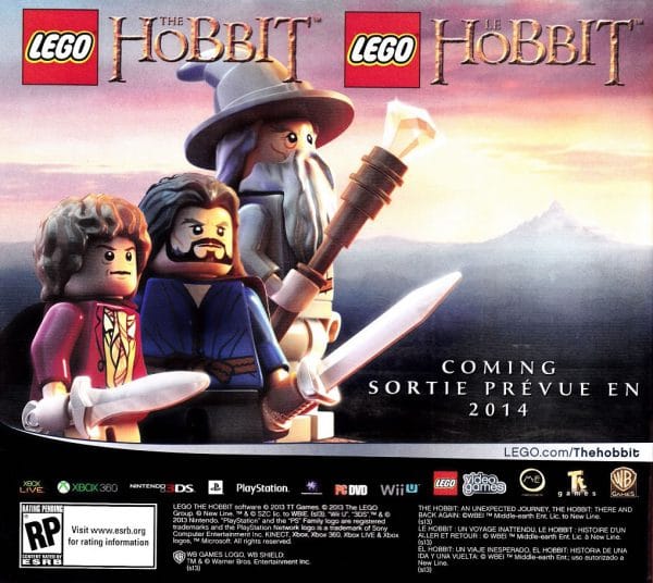 Ci-dessus l'annonce d'un jeu vidéo LEGO The Hobbit pour 2014 sur l'ensemble des plateformes existantes (XBOX 360, Playstation, Nintendo 3DS, PC, WiiU (pas de mention des plateformes PS4 et XBOX One), et ci-dessous un visuel confirmant que "Le voyage se termine en 2014" sans doute avec une ultime vague de sets pour la sortie du troisième volet de la trilogie : The Hobbit, The Battle of the Five Armies.